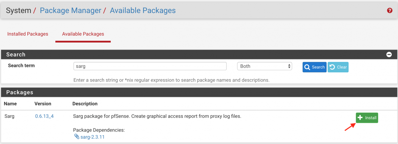 转到系统 > 插件管理,搜索Sarg软件包然后进行安装。