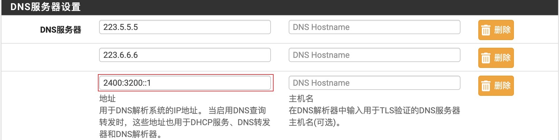 添加IPv6 DNS