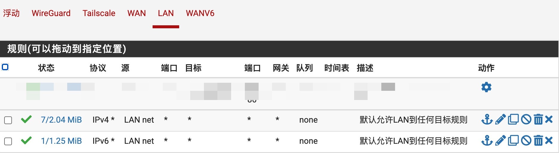 转到LAN 选项卡,添加允许IPv6流量的防火墙规则。