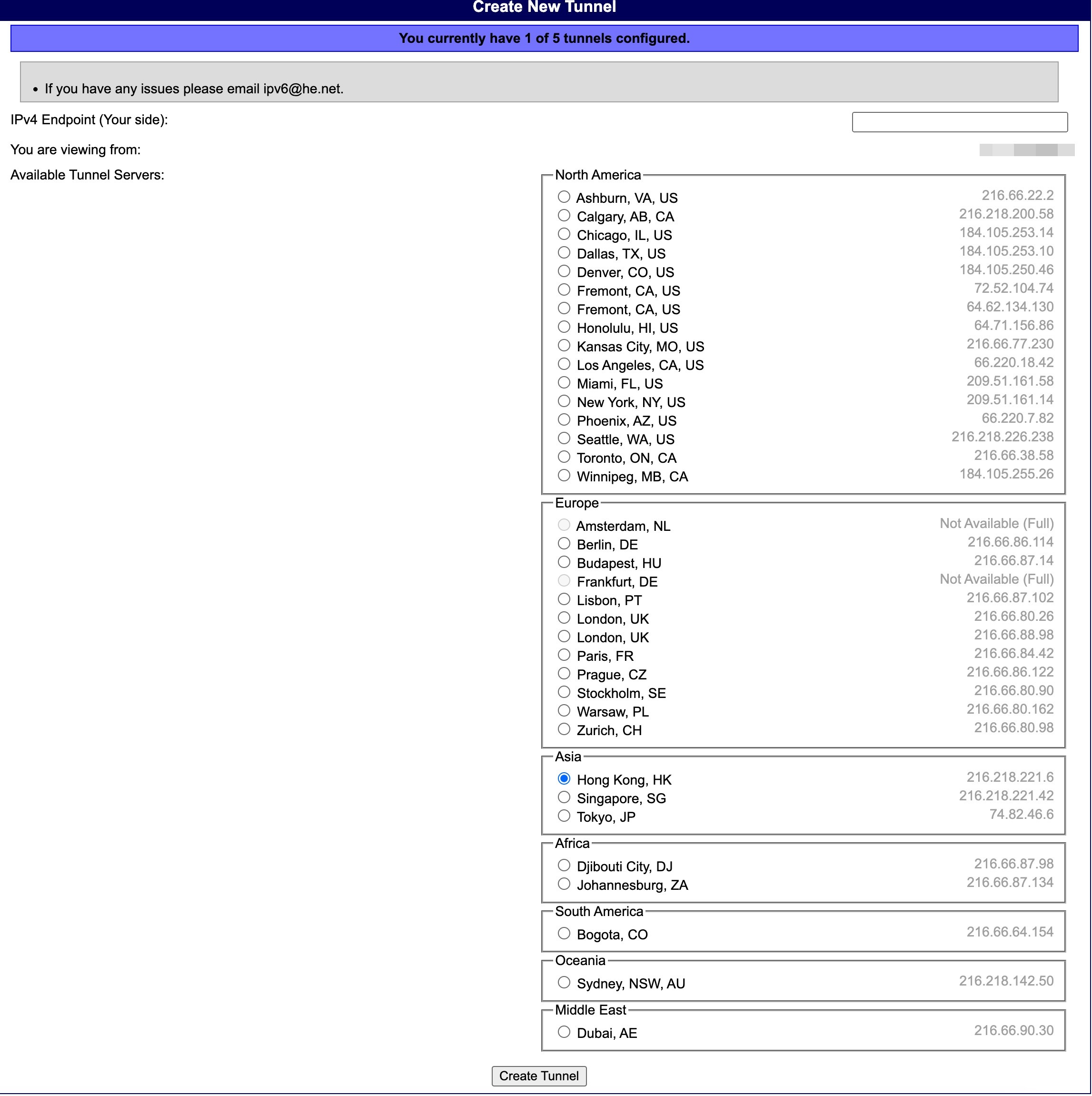 • 服务类型:HE.net Tunnelbroker