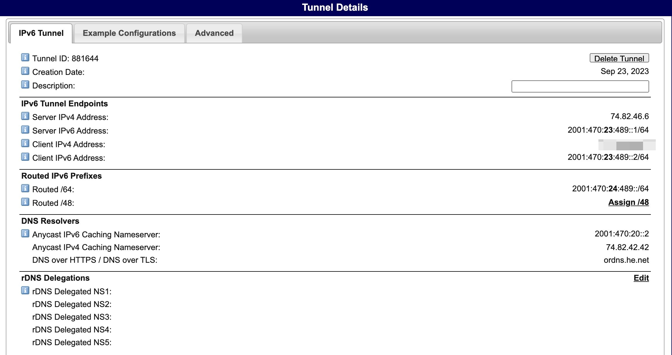 注意: 使用公共IPv6隧道可能会影响一些网站的访问,例如Netflix,因为隧道会被视为“代理”。HE也不允许Cloudflare的入站连接(除非支付费用)。