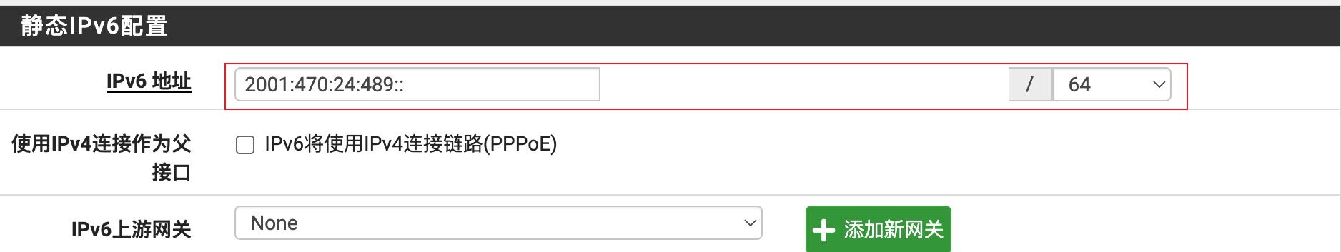 参考资料:pfSense 配置秘诀 — 通过隧道代理服务配置IPv6