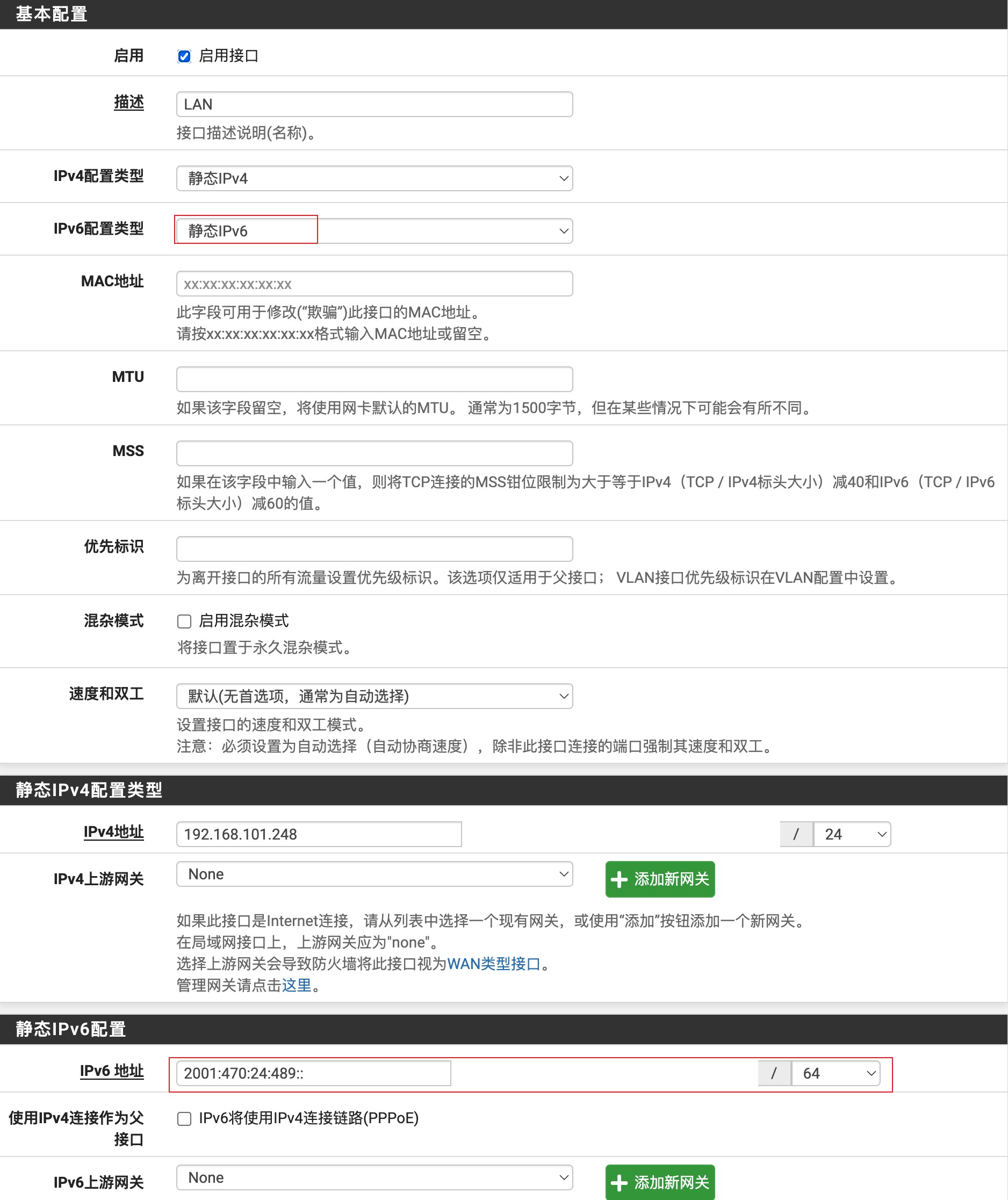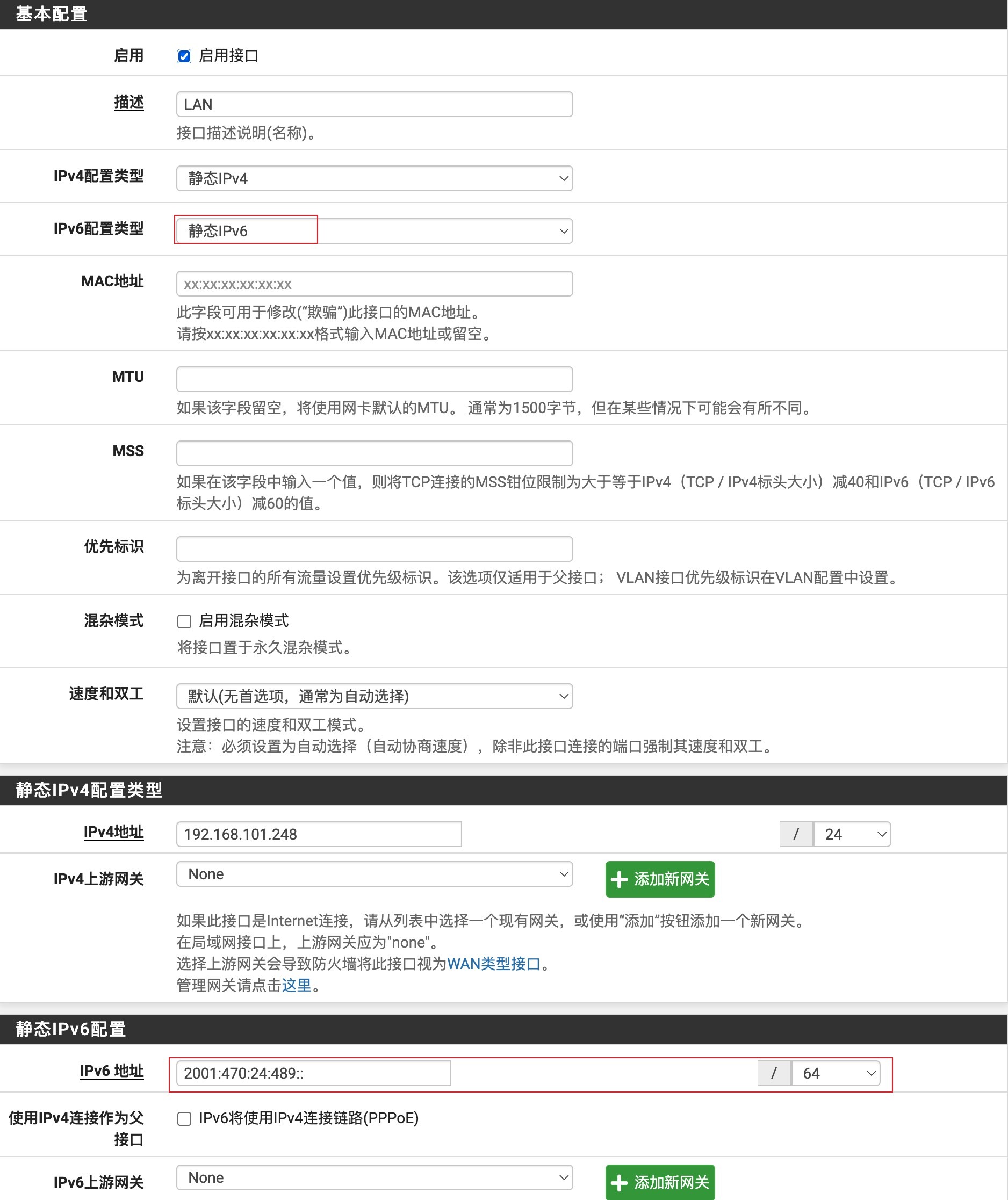 LAN接口IPv6配置