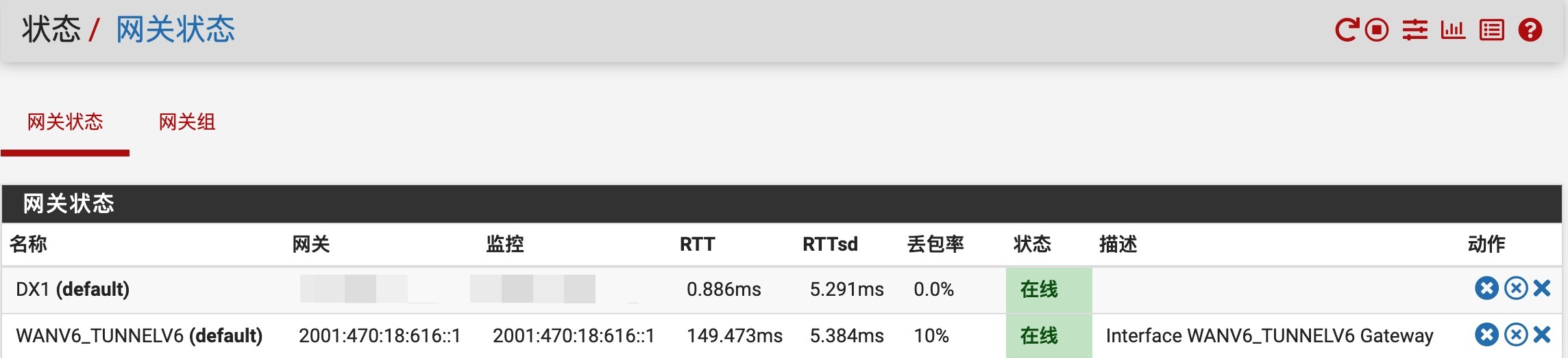 这时查询网关状态,可以检查隧道节点连通状况。