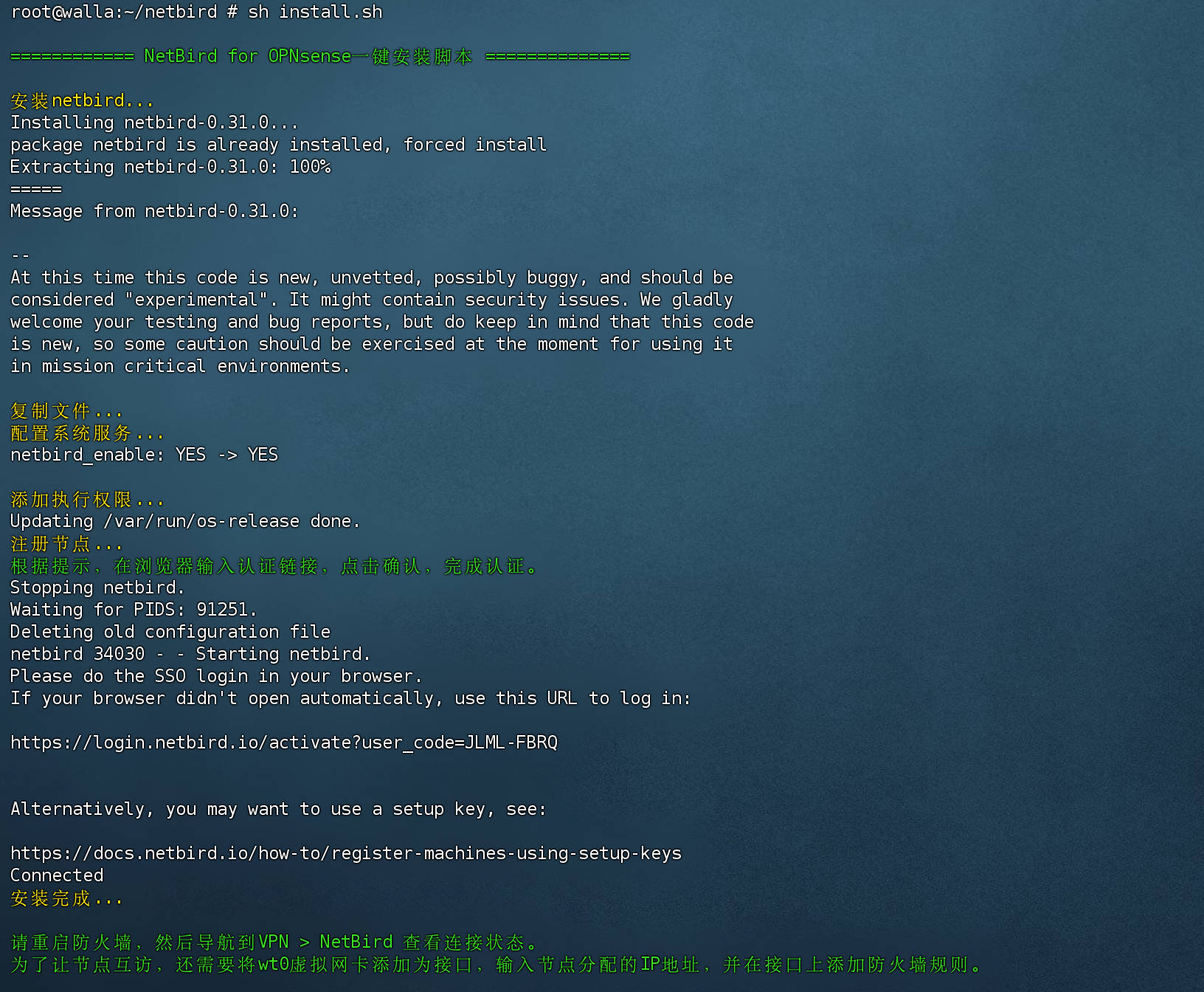OPNsense安装配置NetBird教程