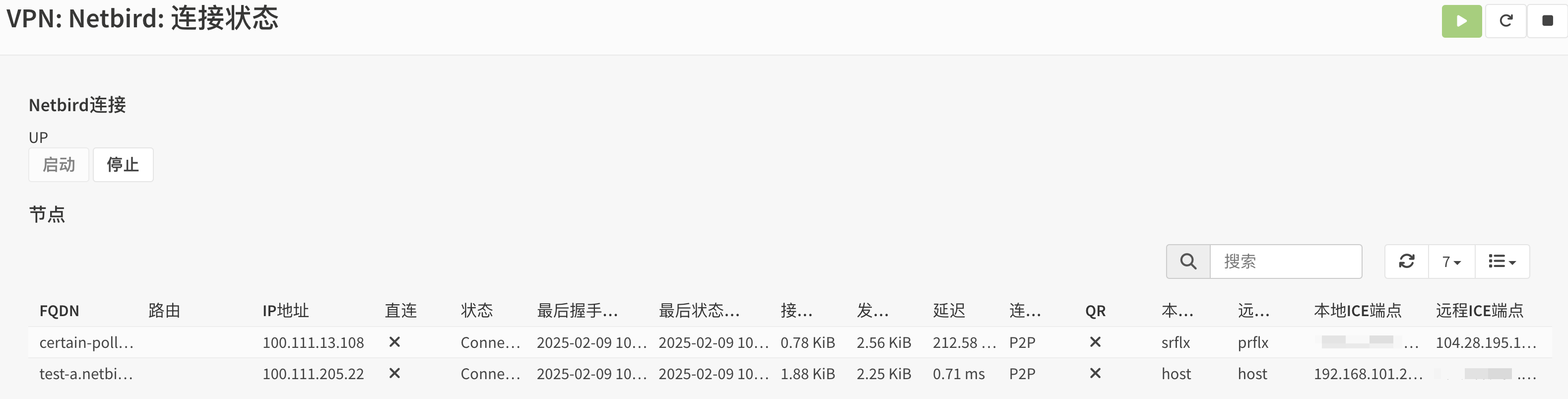 可以查看节点的连接状态。
