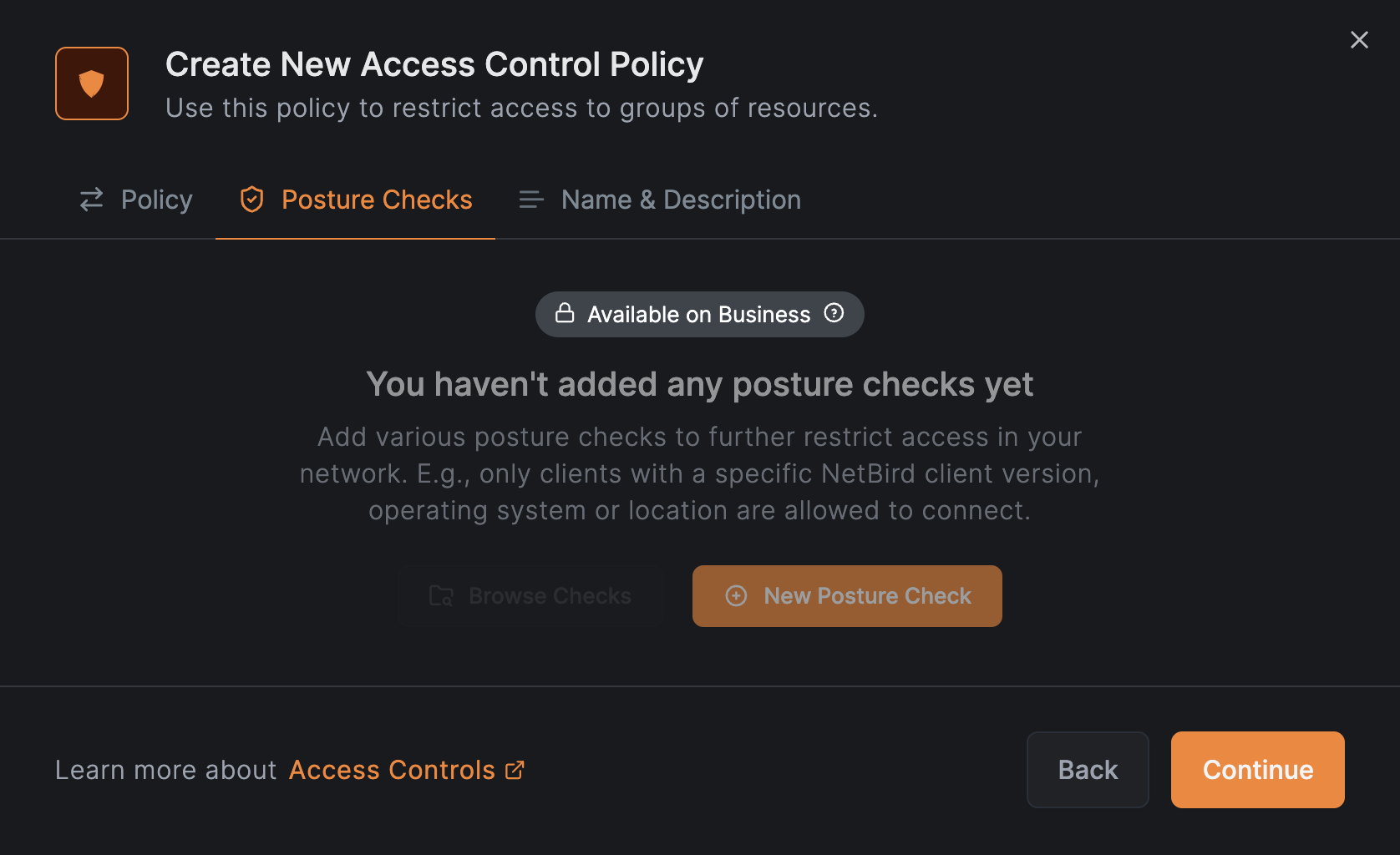 访问控制策略,非商业用户不包含该功能,单击继续。