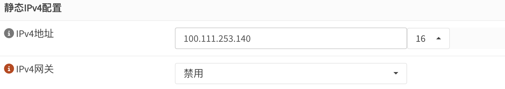 接口静态IP地址输入NetBird上分配的ipv4地址,掩码为16。