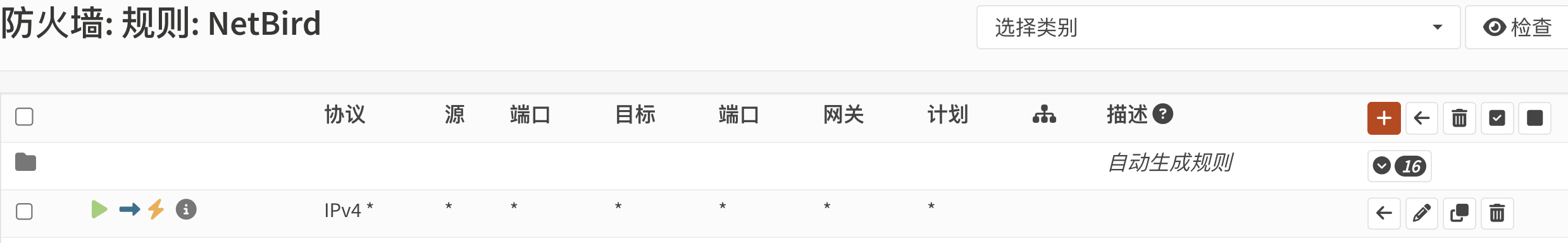 转到防火墙>规则,在NetBird接口上,添加一条any to any的放行规则。