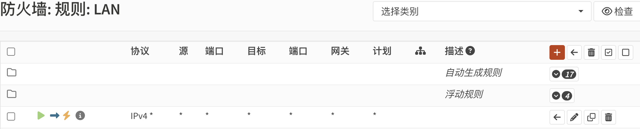 转到防火墙>规则>LAN,添加一条 any to any 规则。注意这里的源不能为LAN NET,必须为 any,或者 vlan的子网。