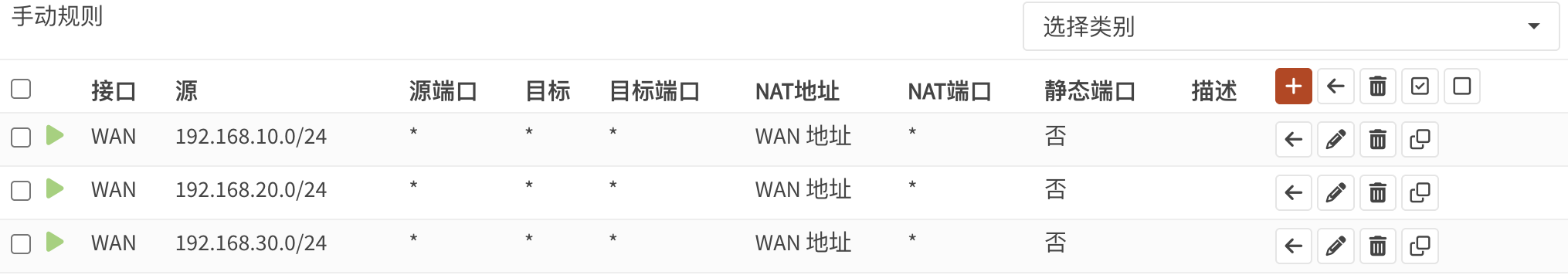 • 在三层交换机上添加其他的VLAN SVI时,需要同时在 OPNsense 添加必要的静态路由和防火墙/NAT规则,以便可以进行 Internet 访问。