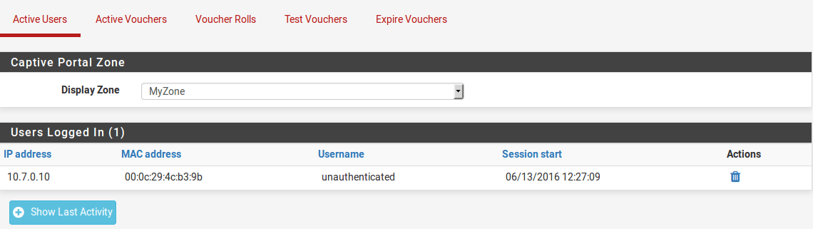 当前活动的凭证及其使用时间的列表可在系统状态>入网门户中的区域活动凭证选项卡上找到,如下图所示。