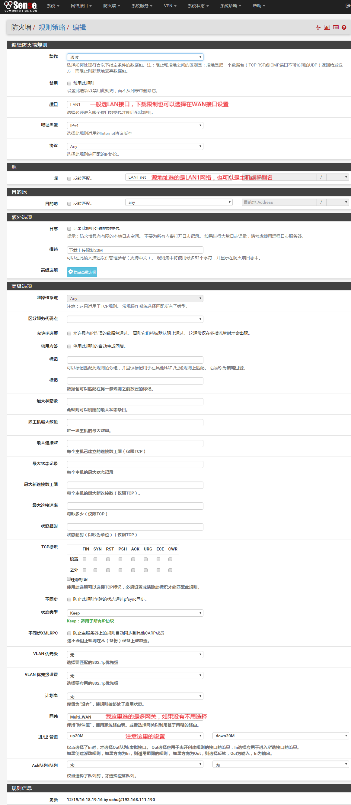 pfSense 单IP、网络、别名管道限速的设置