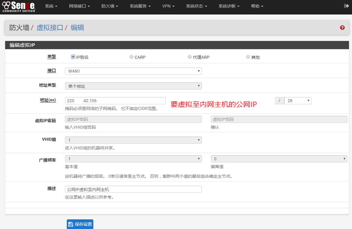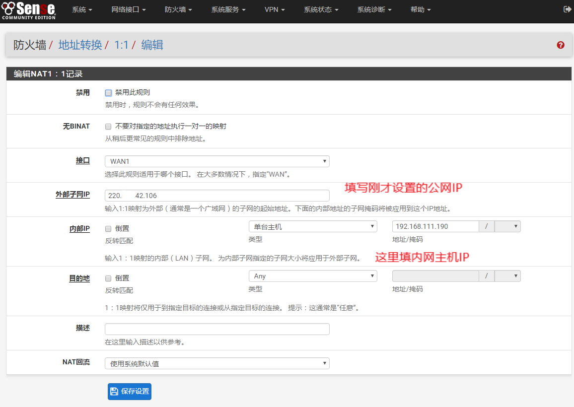 pfsense的功能非常强大,今天就介绍一下pfsense的公网IP映射功能。