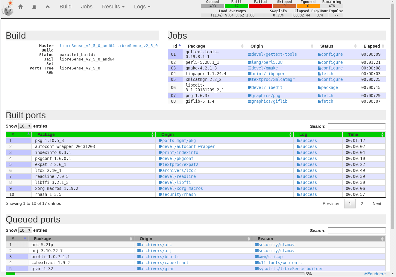 执行./build.sh --update-pkg-repo来编译pfSense的〜500 FreeBSD端口。可以使用HTTP监视服务器上的构建环境(http://服务器IP地址/poudriere)。预计运行时间2到4个小时。