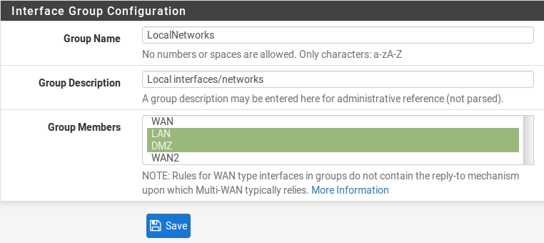 pfSense上的接口支持接口本身的各种选项组合。它们还可以在单​​个接口上支持多个网络和协议,或者可以将多个接口绑定在一起成为更大容量或冗余的虚拟接口。