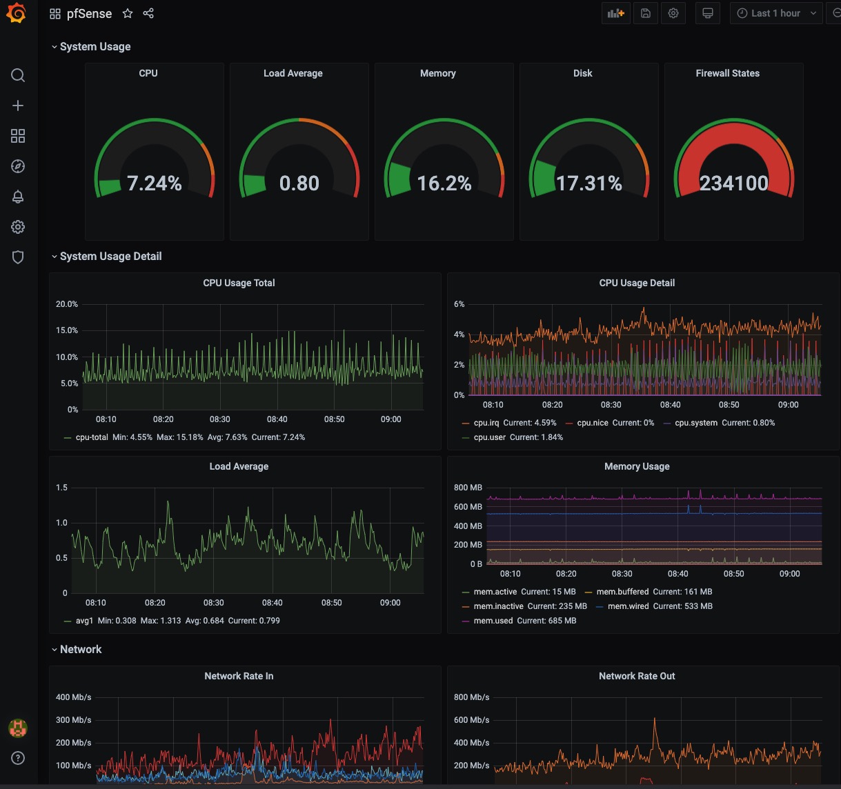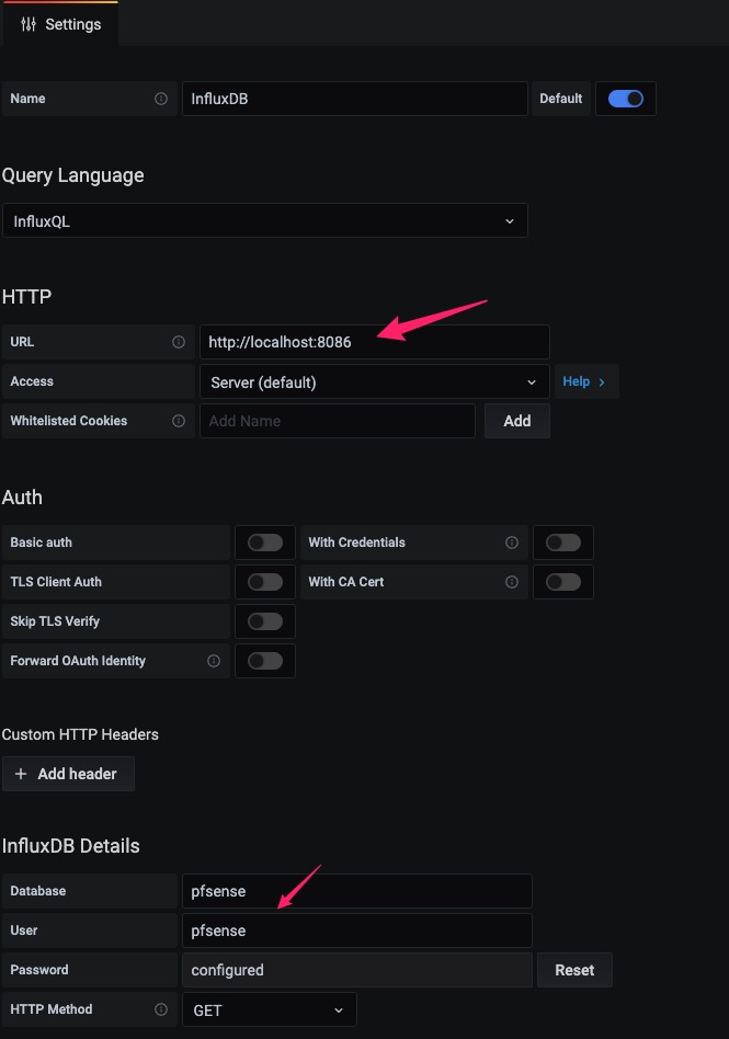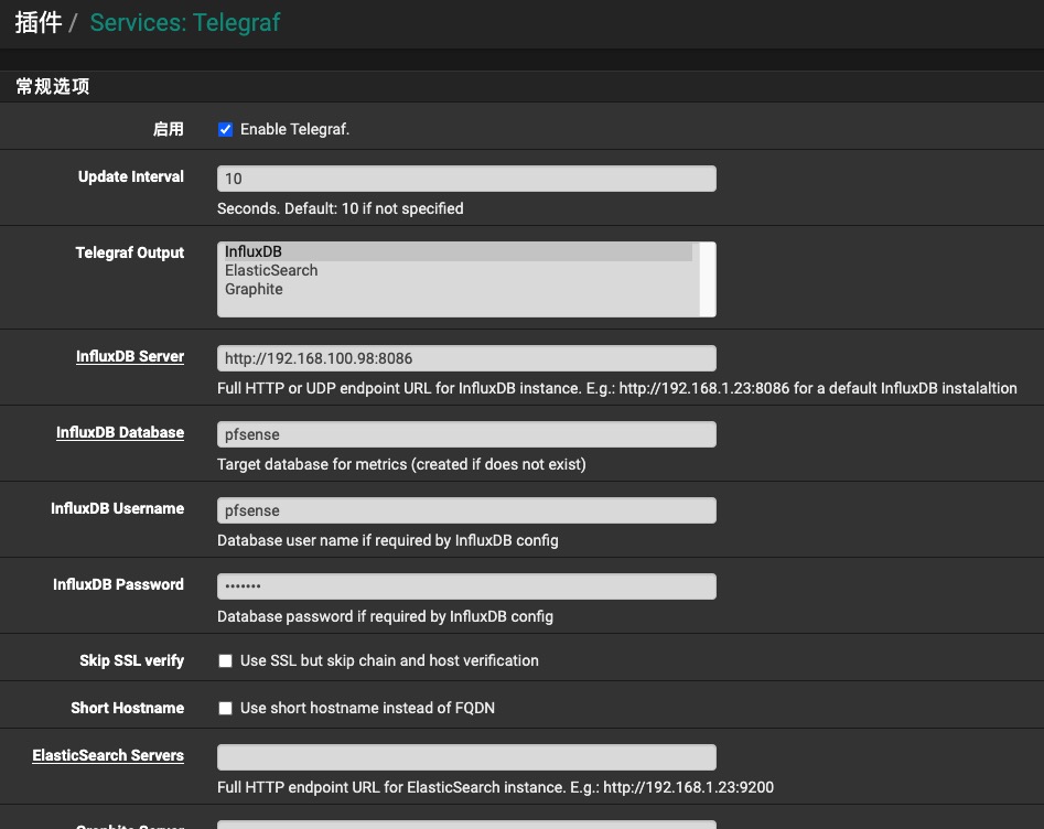 保存后,pfSense将以设置的更新间隔将数据发送到InfluxDB。