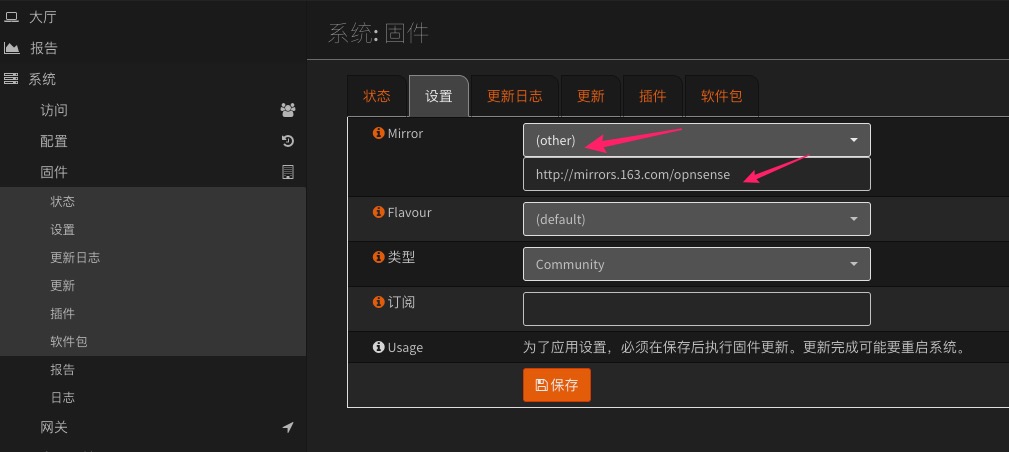OPNsense添加自定义更新镜像站点