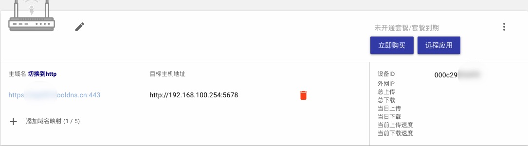 进入DDNSTO网站配置后台,按提示输入主域名和目标主机地址,主域名必须输入6个以上字符,后缀由系统自动处理。本例中,由于要访问pfSense防火墙,目标主机地址输入:http://192.168.100.254:5678,如果是访问OpenWrt,则输入http://192.168.100.1。