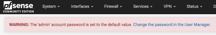 1、如果系统管理员未更改默认密码,pfSense现在将显示警告信息。