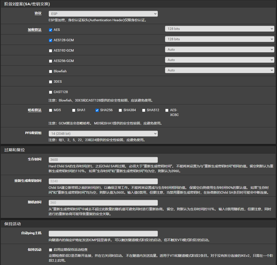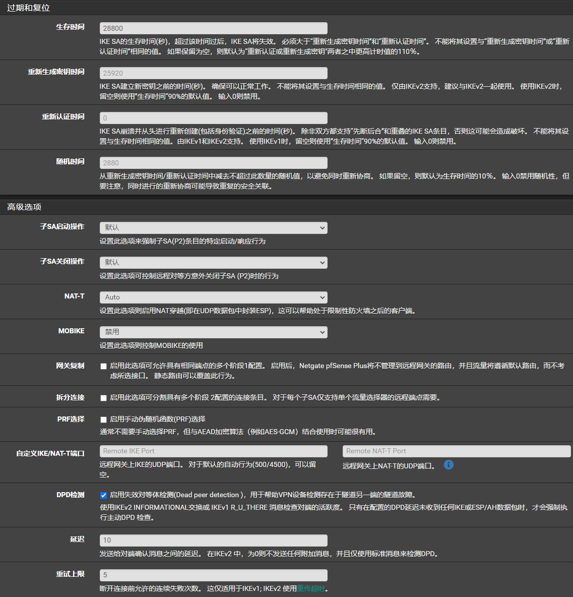 - 密钥交换版本首选IKEv2,如果不确定,可以选Auto。
