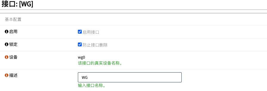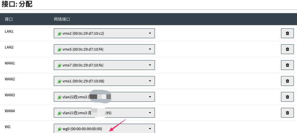 • 在“可用网络端口”列表中,找到类似wg0这样的接口