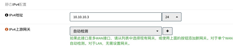 在IP地址栏,输入IPv4地址,本示例为10.10.10.3/24。