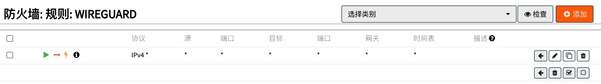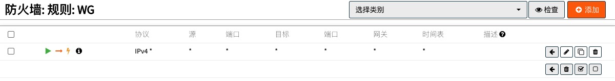 第三条,在新添加的WG接口上,添加一条any to any的规则 ,如下图所示:
