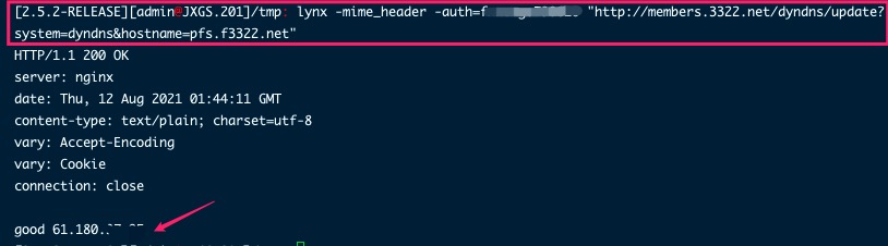 lynx -mime_header -auth=用户名:密码 "http://members.3322.net/dyndns/update?system=dyndns&hostname=域名"