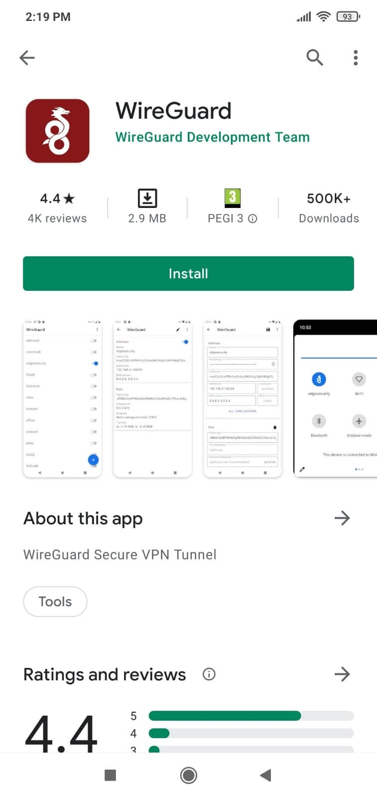图 17. 从 Playstore上安装 WireGuard Android 应用程序