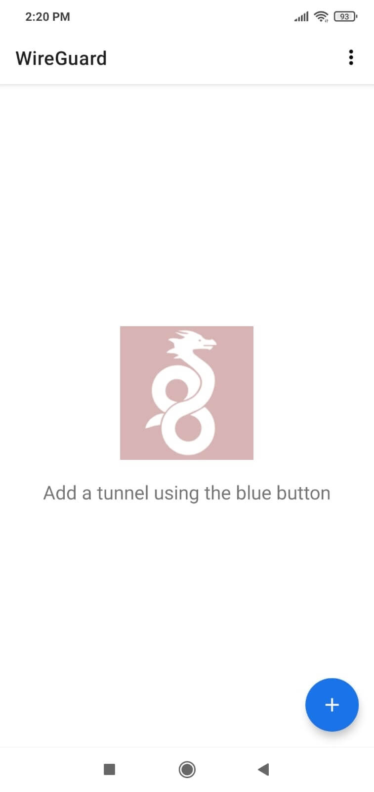 安装 WireGuard 应用程序后,我们需要为 VPN 隧道添加一个新的配置文件。单击蓝色的+ 图标按钮。