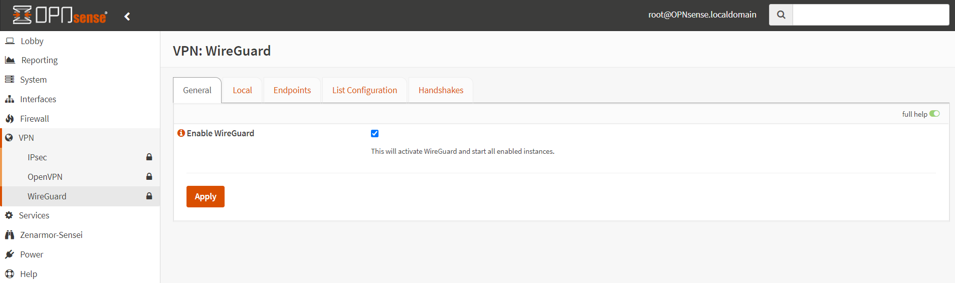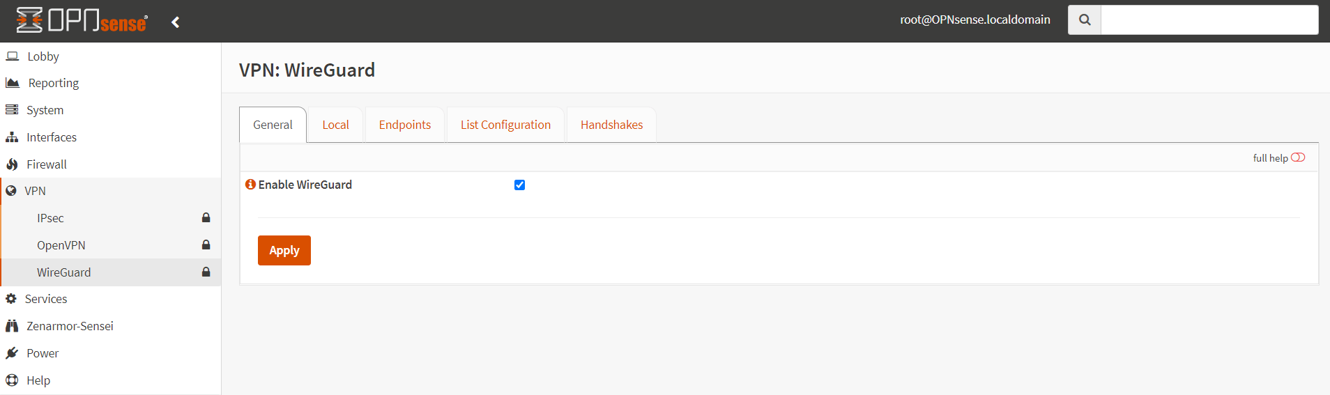 图 25. 在 OPNsense 上启用 WireGuard 服务器