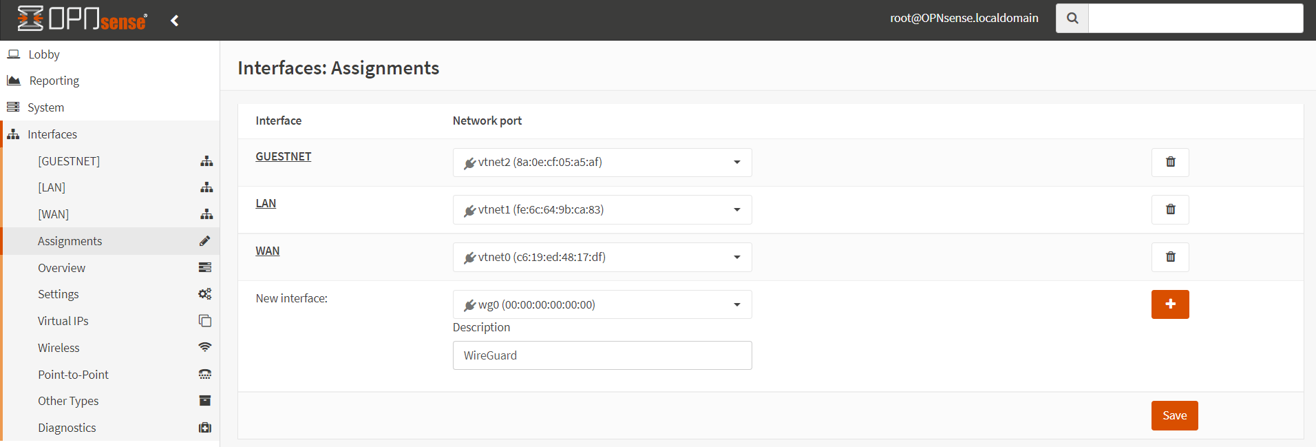 图 26. 在 OPNsense 上创建 WireGuard 接口