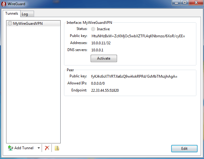 图 14.Windows 客户端上的 WireGuard Tunnel 配置
