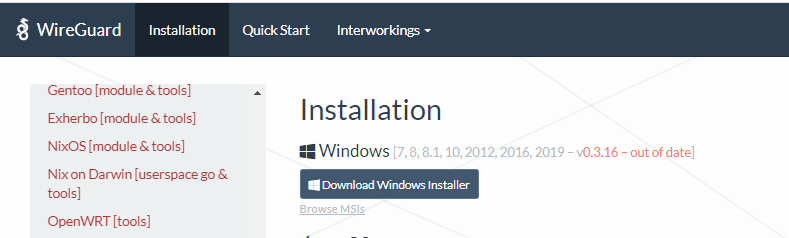 WireGuard for Windows 支持 Windows 7、8、8.1、10、2012、2016 和 2019,并提供了 64 位和 32 位版本。: