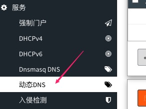 安装插件后,刷新一下菜单,就会在“服务”菜单下看到“动态DNS”菜单选项。