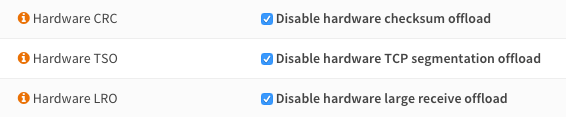 据报道,这个问题可以通过在OPNsense domU和Vifs上禁用cheksum offloading来解决问题。
