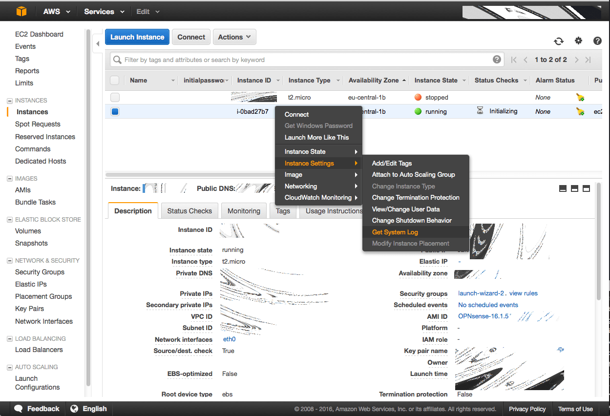 ../../_images/aws_instances.png选择映像,转到“image settings映像设置”,然后“get system log获取系统日志”以获取初始密码