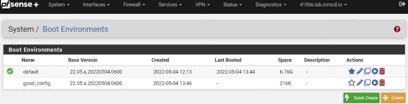在pfSense plus的下一个版本22.05当中,新添加了一个令人兴奋的新功能:ZFS Boot Environments(ZFS引导环境)。简单来说,它提供了在ZFS磁盘文件当中,为pfSense plus增加了系统快照功能。