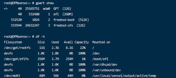 OPNsense使用基于FreeBSD的操作系统,一般使用 UFS(Unix 文件系统)作为其根分区的文件系统;也称为freebsd-ufs。在ESXI虚拟机中,如果增加了磁盘大小,还必须在OPNsense中扩展该文件系统。如果是写盘安装OPNsense定制版,也必须在安装完成以后,扩展文件系统。