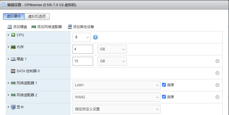 在ESXI虚拟机设置中,再次调整磁盘大小为15G。