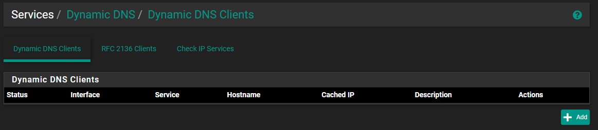 进入pfSense web菜单,选择服务下的动态DNS,选择添加。