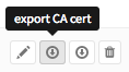 由于您的浏览器不信任CA,因此您将为您访问的每个页面收到有关此信息的消息。要解决此问题,您可以将密钥导入您的操作系统并设置为受信任。要导出密钥,请转到系统 – >证书 – >认证,然后单击右侧的导出图标来导出CA证书。