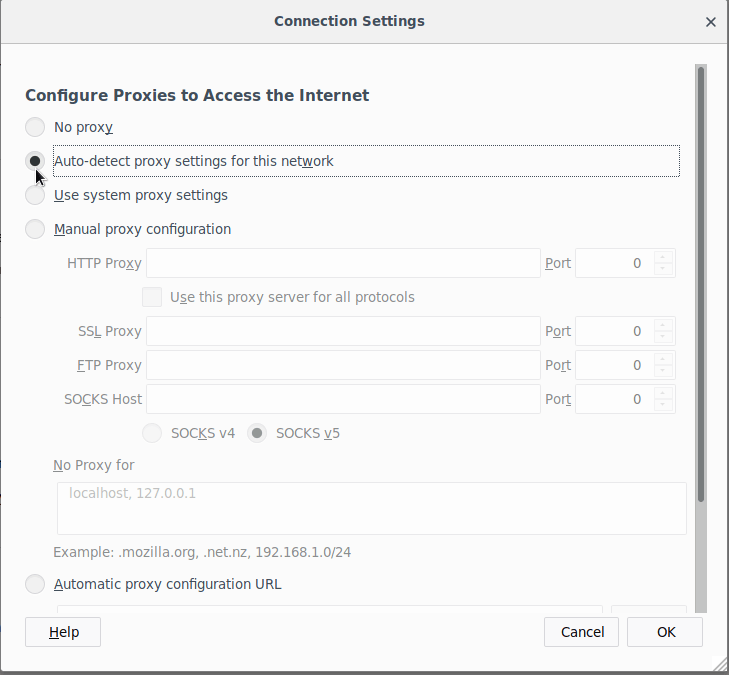 - 在文本字段中输入上面段落中提到的PAC文件的URL,然后单击“确定”