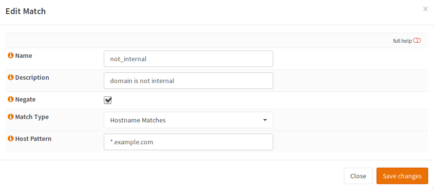 其余字段取决于使用的匹配类型。例如,如果我们匹配“普通主机名”,我们不需要任何其他参数。