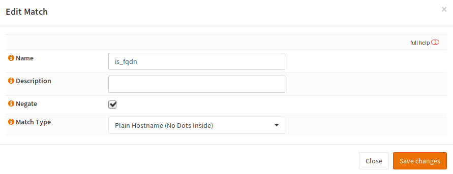 匹配“Plain Hostname(普通主机名)”,则意味着域名没有点,所以如果我们想创建一个fqdn匹配,我们可以简单地反转这个: