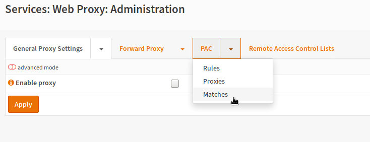 如果无法使用透明代理,OPNsense仍支持通过WPAD / PAC进行自动代理配置。