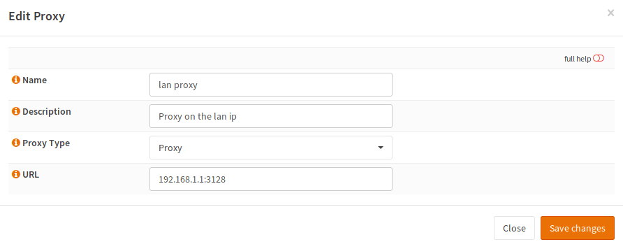 OPNsense支持生成PAC文件来向客户端提供自动代理配置文件。例如,如果您的Web GUI在http://192.168.0.1/上运行,则您的PAC URL则是http://192.168.0.1/wpad.dat。