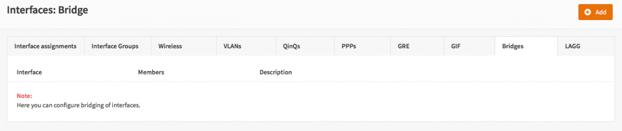 创建LAN和WAN的网桥,转到 接口 – > 其他类型 – >网桥:添加选择LAN和WAN。