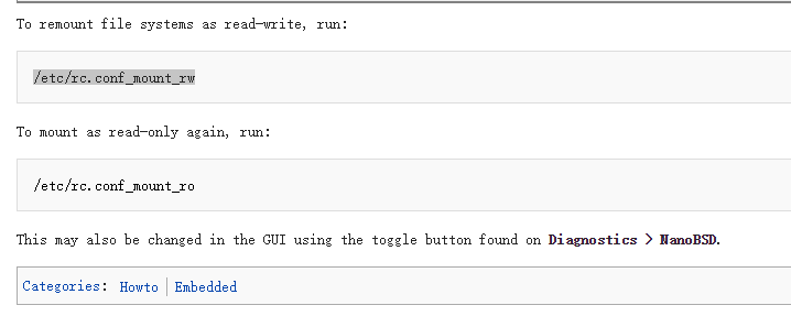 pfSense不能写入问题的解决 发表于2018年7月29日由鐵血男兒 回复 在进行pfsense2.15汉化时,修改的文件不能通过WinSCP写入pfsense系统,提示“写入错误”。 后来在官方论坛找到了解决办法: 进入命令行: 执行以下命令可以了: